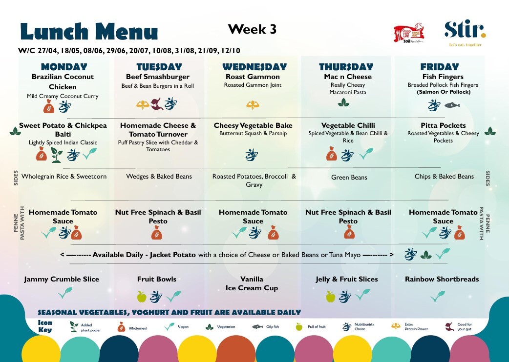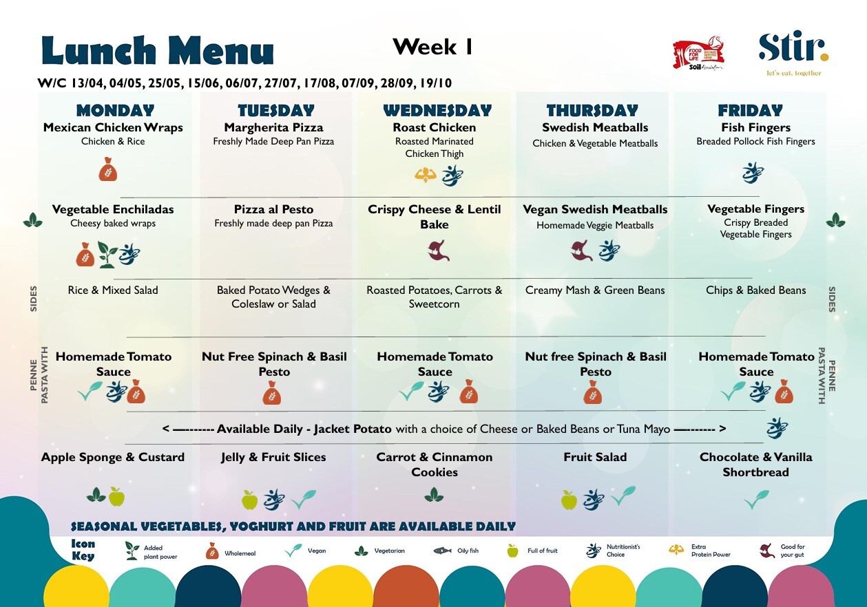 Our food is cooked fresh on the premises, with fresh and locally sourced ingredients which provide an exciting menu for the children to enjoy. The cost is £2.90 a meal and meals should be paid for through ParentPay. A link to our menu can be found below.